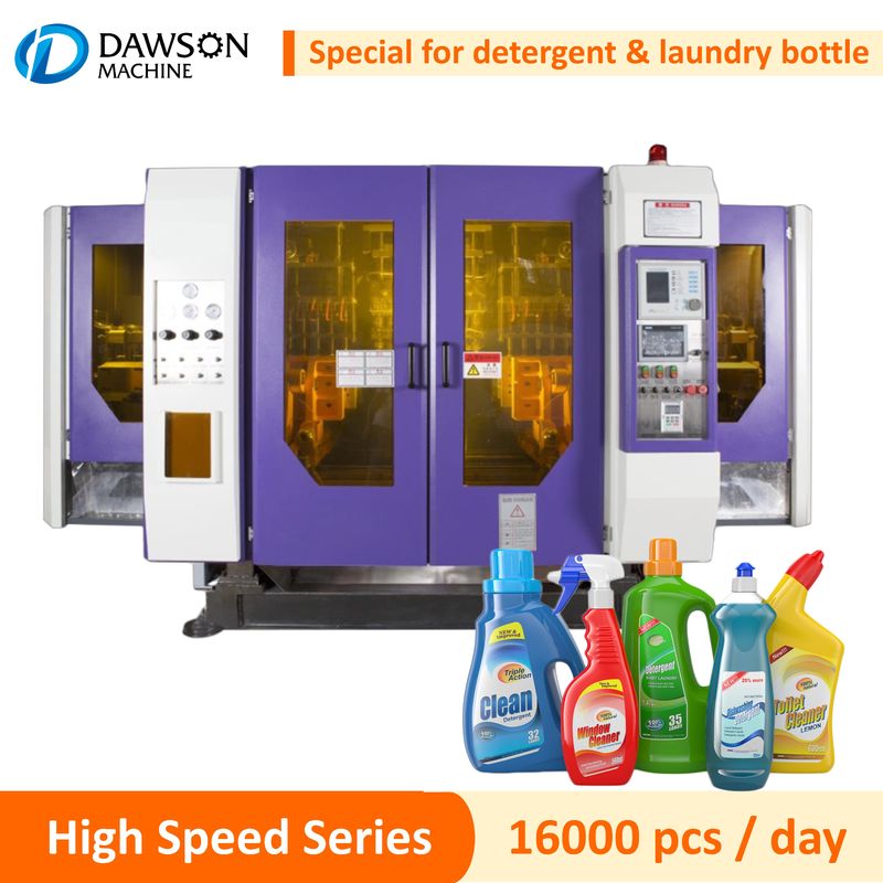 Special blow-molding machine for high-speed laundry detergent, dual-station and dual-mould. Under the same floor area and labor cost, the output is much more than that of ordinary machines, and the extra is profit
