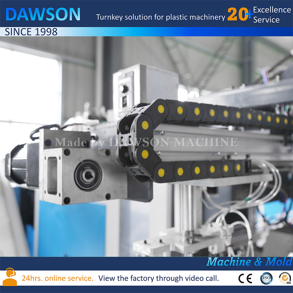 · The machine equipped with take out robot and the robot put the bottles onto the bottle conveyor